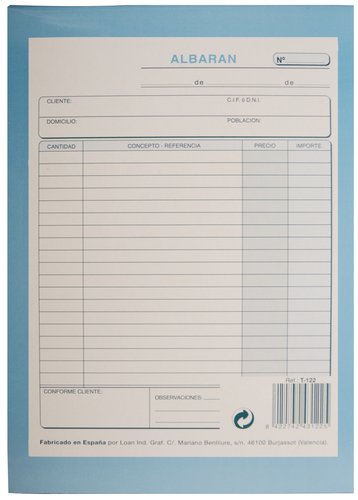 Talonario de albaranes impreso en papel normal y autocopiativo